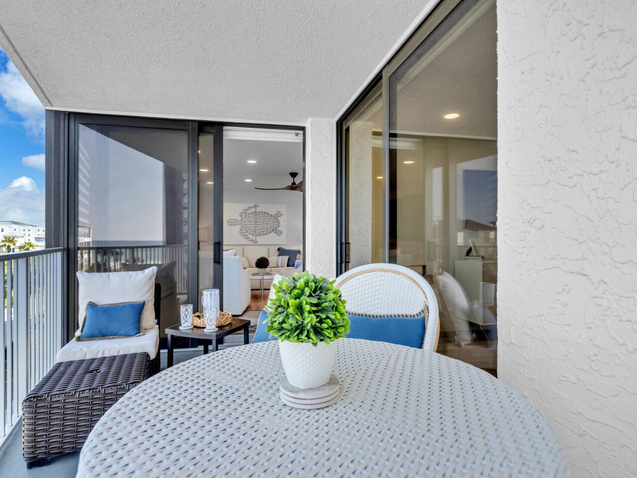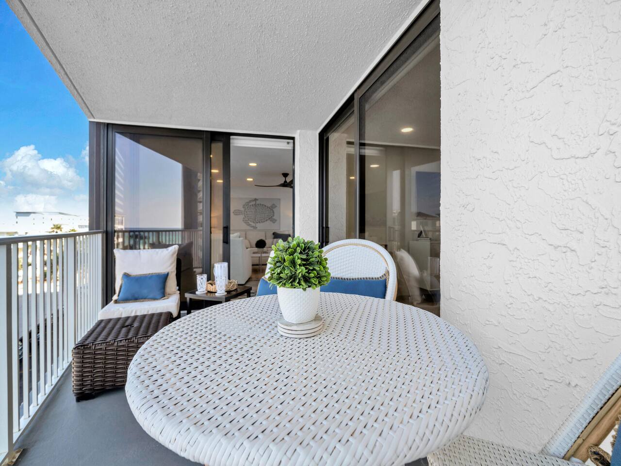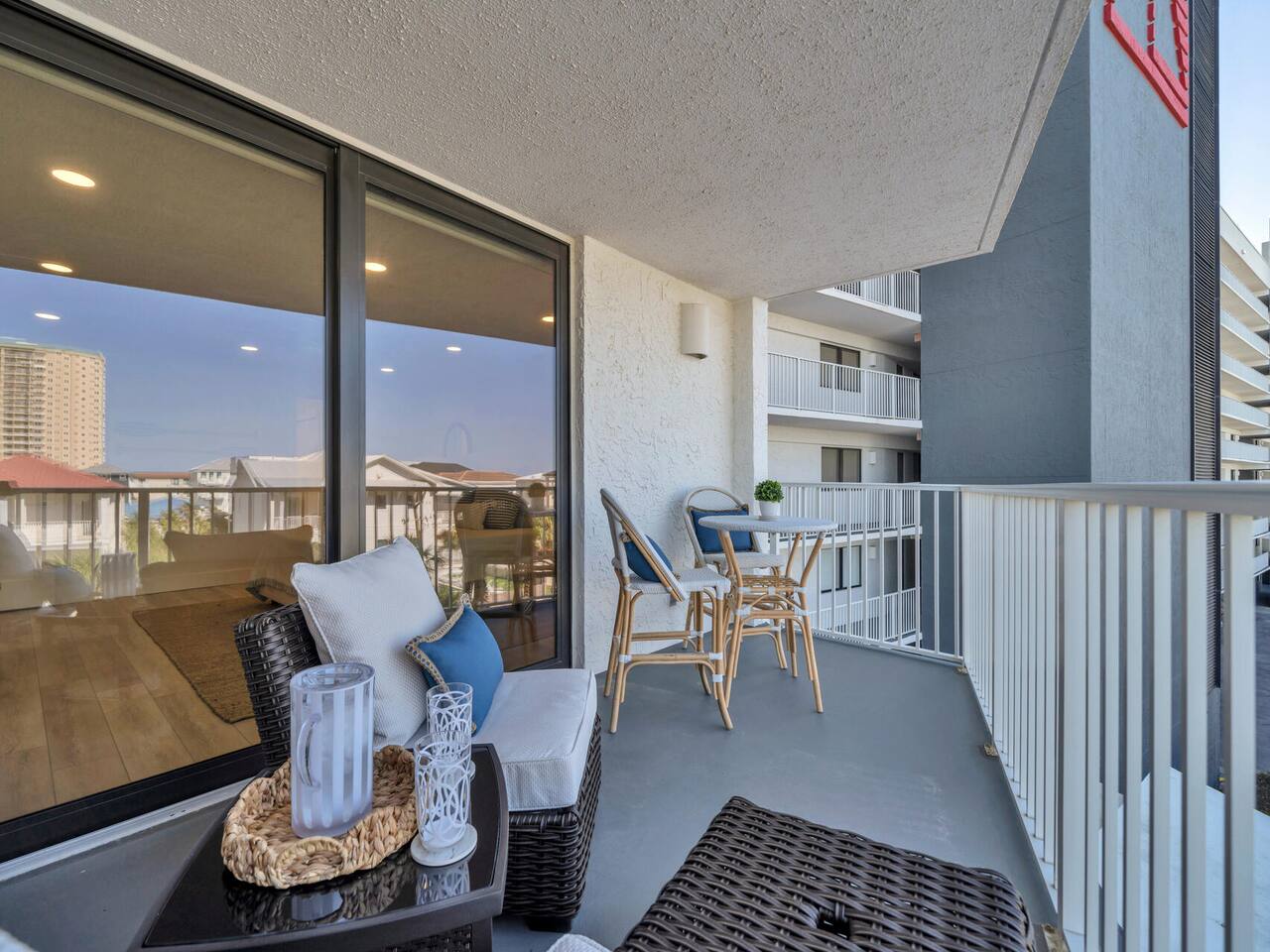 -Gulf views + private balcony with sea breezes -Two chairs and umbrella (Beach Service) included seasonally -Fully remodeled from the studs up -Two spacious bedrooms including a luxe master suite -Direct deeded beach access on the property -Resort-style amenities: pools, hot tub, & gym -Custom kitchen with beverage fridge + coffee bar setup -Hurricane-rated sliding doors & all-new windows -In-unit washer/dryer + modern finishes throughout MAX TWO CARS PER BOOKING