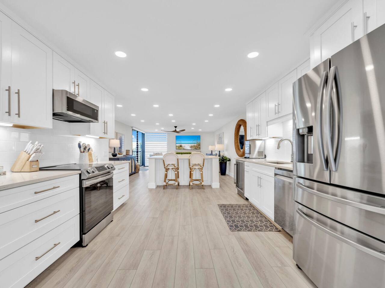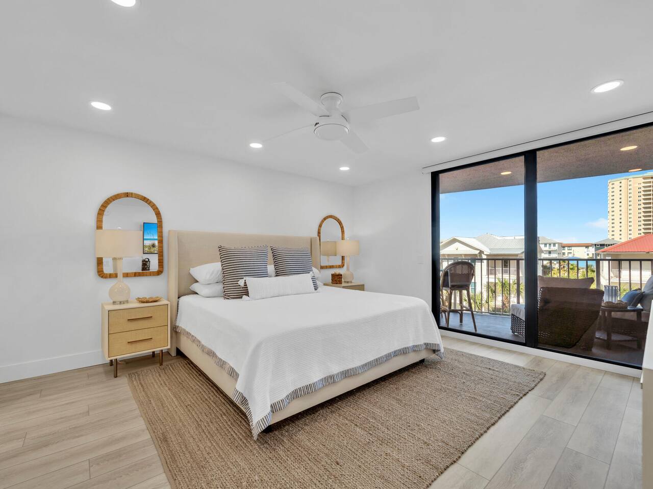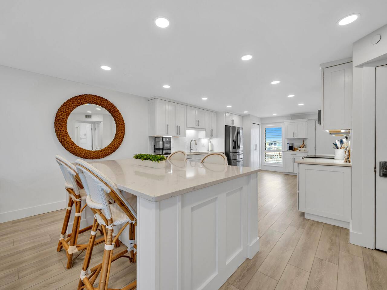 Welcome to the Coastal Pearl Retreat— a completely remodeled, gulf-view condo in the heart of Miramar Beach. Perched on the 3rd floor with direct views of the Gulf, this bright and airy getaway is packed with thoughtful upgrades and high-end finishes that make it feel brand new. The open-concept layout features soaring ceilings, custom lighting, and wide LVP plank floors that set the stage for relaxation. The all-new kitchen is a stunner: think quartz countertops, stainless steel appliances (plus a beverage fridge & nugget ice-maker!), and tons of storage – all centered around a giant island perfect for family dinners, card games, or happy hour at the beach. The living area opens to a private balcony where you can sip your morning coffee or evening wine while listening to the waves roll in. Both bedrooms are spacious, and the primary suite features dual closets and a sleek ensuite with a double vanity and frameless glass shower/tub combo. You’ll also find a second full bathroom, perfect for friends or family. Outside your door, the Mainsail resort community offers everything you need for a classic Florida beach vacation: deeded beach access, pools (including a kid’s pool), hot tub, newly updated tennis/pickleball courts (currently under construction with estimated completion in 2026), clubhouse, fitness center, and 24/7 gated security. Best of all? It’s all just minutes from outlet shopping, dining, and groceries — so everything you need is right at your fingertips. This is beachside luxury done right. ✨ Book now and experience it for yourself! Guest parking pass required for $100, included in booking fees as “resort fee” Guests are required to be 25 years old and up to book.