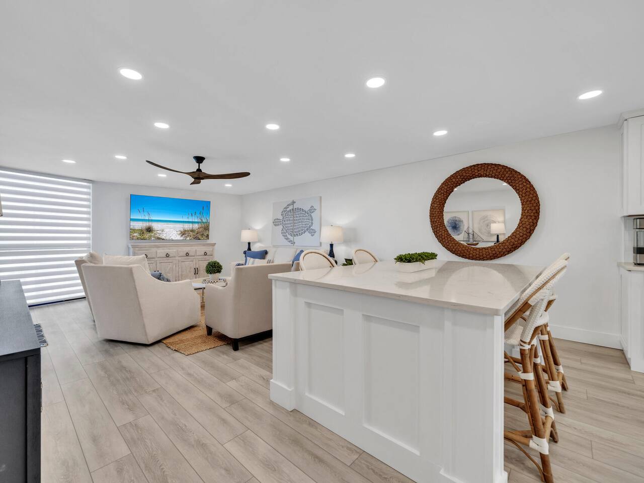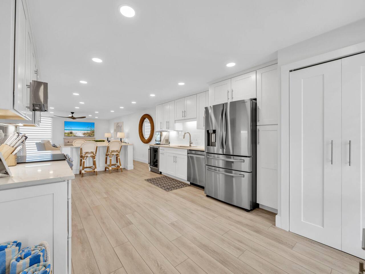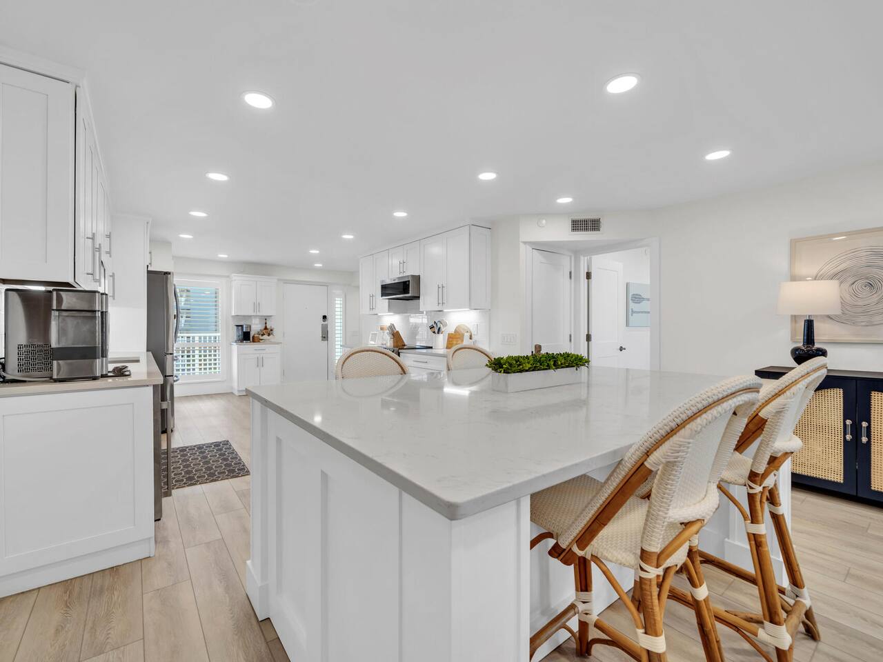 Welcome to the Coastal Pearl Retreat— a completely remodeled, gulf-view condo in the heart of Miramar Beach. Perched on the 3rd floor with direct views of the Gulf, this bright and airy getaway is packed with thoughtful upgrades and high-end finishes that make it feel brand new. The open-concept layout features soaring ceilings, custom lighting, and wide LVP plank floors that set the stage for relaxation. The all-new kitchen is a stunner: think quartz countertops, stainless steel appliances (plus a beverage fridge & nugget ice-maker!), and tons of storage – all centered around a giant island perfect for family dinners, card games, or happy hour at the beach. The living area opens to a private balcony where you can sip your morning coffee or evening wine while listening to the waves roll in. Both bedrooms are spacious, and the primary suite features dual closets and a sleek ensuite with a double vanity and frameless glass shower/tub combo. You’ll also find a second full bathroom, perfect for friends or family. Outside your door, the Mainsail resort community offers everything you need for a classic Florida beach vacation: deeded beach access, pools (including a kid’s pool), hot tub, newly updated tennis/pickleball courts (currently under construction with estimated completion in 2026), clubhouse, fitness center, and 24/7 gated security. Best of all? It’s all just minutes from outlet shopping, dining, and groceries — so everything you need is right at your fingertips. This is beachside luxury done right. ✨ Book now and experience it for yourself! Guest parking pass required for $100, included in booking fees as “resort fee” Guests are required to be 25 years old and up to book.